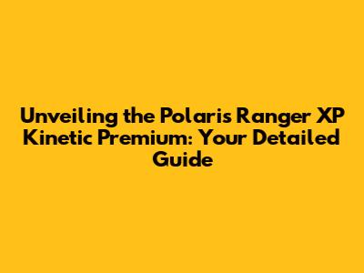 Hey everyone! Today, we're diving deep into the Polaris Ranger XP Kinetic Premium, a game-changer in the electric UTV world. This isn't just any side-by-side; it's a powerhouse that blends raw electric performance with the rugged durability Polaris is known for. We'll explore everything from its electric powertrain and range to its premium features and overall value proposition. So, buckle up, and let's get into the nitty-gritty of what makes the Polaris Ranger XP Kinetic Premium stand out.