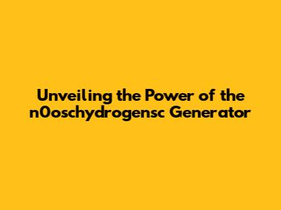 The Science Behind the n0oschydrogensc Generator: How It Works