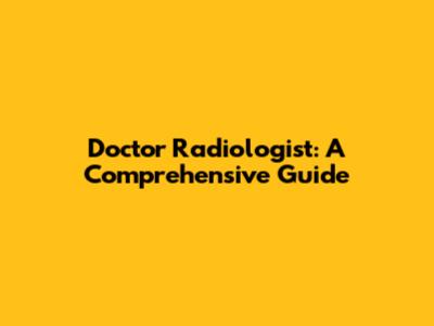 Doctor Radiologist: A Comprehensive Guide