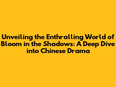 Hey drama enthusiasts! Ever found yourselves utterly captivated by a series? Well, if you haven't yet experienced the rollercoaster that is Bloom in the Shadows, a Chinese drama, you're in for a treat. This isn't just another show; it's a meticulously crafted narrative that delves into themes of love, loss, ambition, and redemption, all set against a backdrop of historical intrigue. Buckle up, because we're about to embark on a journey to explore everything that makes Bloom in the Shadows a must-watch.