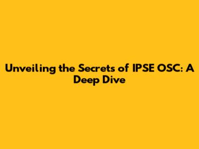 Hey everyone! Ever heard of IPSE OSC? If not, you're in for a treat. And if you have, well, buckle up! We're about to dive deep into the world of IPSE OSC and unravel its mysteries, covering everything from its core concepts to its real-world applications. This article is your comprehensive guide to understanding this fascinating subject. Ready? Let's go!