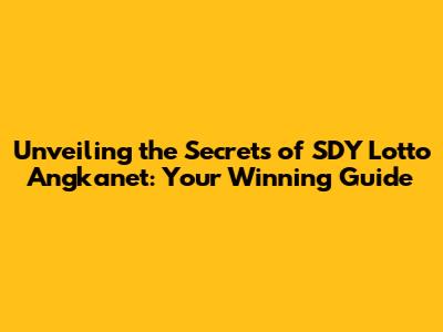 Hey guys, let's dive deep into the world of SDY Lotto Angkanet! If you're into the thrill of the lottery and are looking for some insights to boost your chances, you've come to the right place. We're going to break down everything you need to know about SDY Lotto, including what Angkanet is, how it works, and some strategies that might just help you hit the jackpot. Buckle up, because we're about to embark on a journey filled with numbers, predictions, and a whole lot of fun!