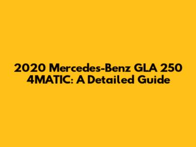 2020 Mercedes-Benz GLA 250 4MATIC: A Detailed Guide