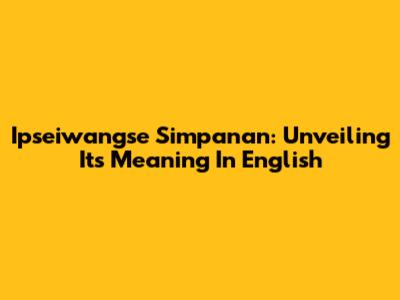 Ipseiwangse Simpanan: Unveiling Its Meaning In English