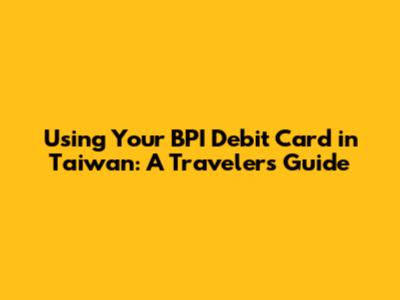 By following these tips, you can make the most of your trip to Taiwan and enjoy a hassle-free experience with your BPI debit card. Safe travels and have a fantastic time!