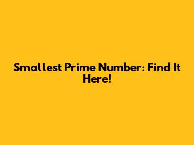 Smallest Prime Number: Find It Here!