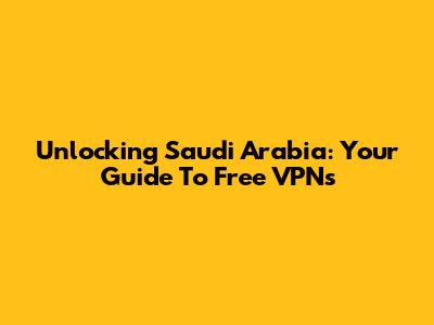 Unlocking Saudi Arabia: Your Guide To Free VPNs