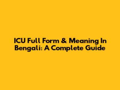 ICU Full Form & Meaning In Bengali: A Complete Guide