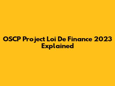OSCP Project Loi De Finance 2023 Explained