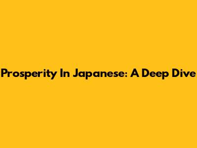 Prosperity In Japanese: A Deep Dive