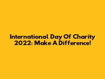 International Day Of Charity 2022: Make A Difference!