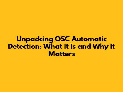 Why Should You Care About OSC Automatic Detection?