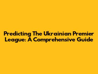 Predicting The Ukrainian Premier League: A Comprehensive Guide