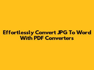 Effortlessly Convert JPG To Word With PDF Converters