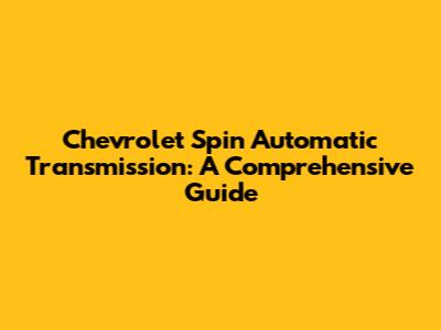 Chevrolet Spin Automatic Transmission: A Comprehensive Guide