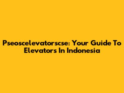 Pseoscelevatorscse: Your Guide To Elevators In Indonesia
