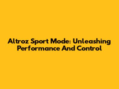 Altroz Sport Mode: Unleashing Performance And Control