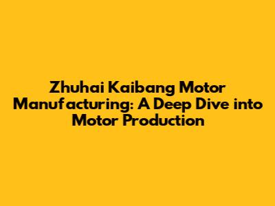Unveiling Zhuhai Kaibang Motor Manufacturing